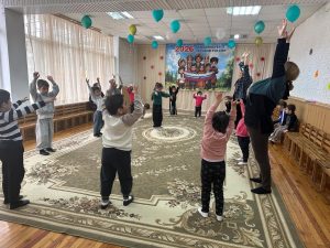 Ежедневно инструктор по лечебной физкультуре Зенибер Мамешева проводит занятия с воспитанниками отделения реабилитации и социальной адаптации детей с проблемами зрения.